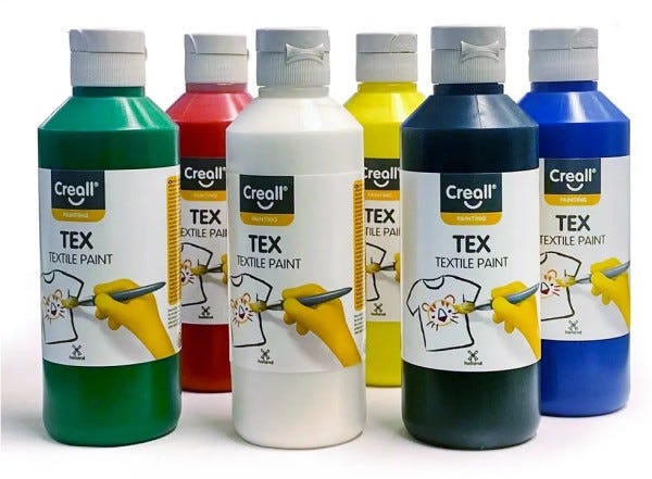 Textilärg Creall är en vattenbaserad tygmålningsfärg för ljusa tyger.Fixeras med strykjärn och därefter tvättbar i maskin upp til 40 grader.Ej lämplig för syntetiska tyger.